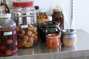 買ってきたお漬物や梅干しを甕へ詰め替えて冷蔵庫へ入れておけば、食事の時は冷蔵庫から食卓へ運ぶだけ。