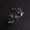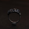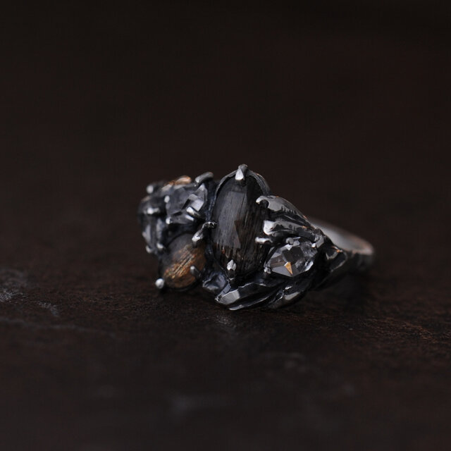 石と洋彫り周りだけ軽く光らせ、それ以外は光らせない燻し仕上げとしています。