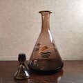 アンティーク 鶴と波のジャポニスム色ガラス デキャンタ 1900年頃 フランス 高25cm [YG50]