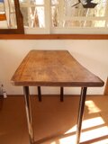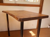 テーブルの木は、自然木の一枚ひのきを使用しており自然の形状を活かし レトロ調に仕上げております。