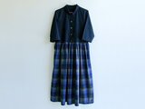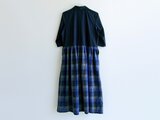 播州織コットン*クラシカルなワンピース(ギャザースカート青系チェック柄)