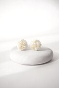 刺繍モチーフは膨らみがあり立体感のある仕上がりです。2gの軽さも特徴で、長時間の着用でも耳への負担を軽減します。裏側には革の素材を使用し、手仕事にて縫い留めています。
