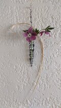 ワイヤーを編んで細い試験管を入れられるようにしたオブジェです。