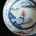 雲と鳳凰◆見込みに山水風景図。伊万里 錦手金彩七寸平鉢 碗 花唐草 骨董/antiques。明治時代【アマテ・貫入・ニュー有り】