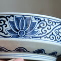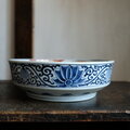側面の豪快で手描き感の溢れる藍での花唐草文様も素敵です。