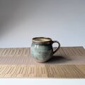 釉薬は、海鼠釉(なまこゆう)を掛け、カップの中は、コーヒーの色が映えるように白っぽいワラ灰釉をかけております。