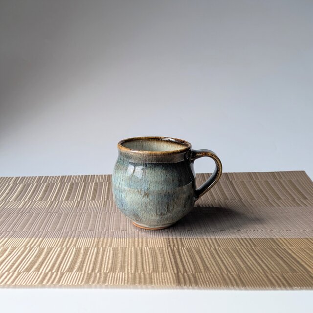 流れる釉薬が美しいブルーのマグカップです。
