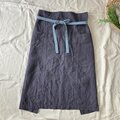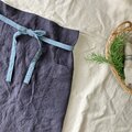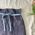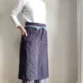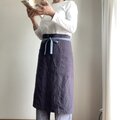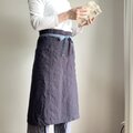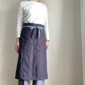 洗いこまれた自然な風合いのソムリエエプロン 腰紐バイカラー ベルギーリネン25番手 スチールグレー×腰紐サックス