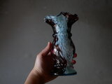 クリシー オパリンガラス スカイブルー×ブラウン フラワーベース フランスヴィンテージ