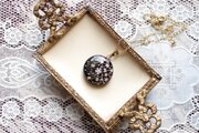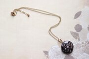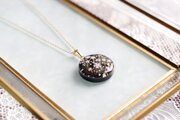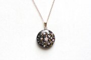 夜を思わせる黒い背景に枝垂れ桜を描きこんだ雅なペンダント。