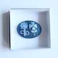 サーモンピンクの地に黒い花の刺繍、ありそうでなかったこの色のとりあわせ、すてきなブローチでした。
