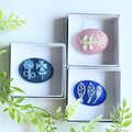 お花の中心には同系色の極小ガラスビーズをあしらいました。