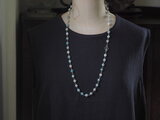 一点目は8mm玉を使い、メガネ留めにしたセミロングのネックレスです。カットが美しい水晶が一粒、キラキラします。