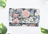 ダークブラウン地に落ち着いた色合いで上品な花柄のクラシックフラワー柄、綿生地使用の蓋付き多機能ケースです。