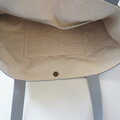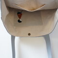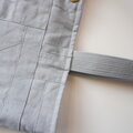 グレイッシュブルーという色名の綿麻キャンバスを繋いで作りました。