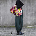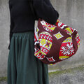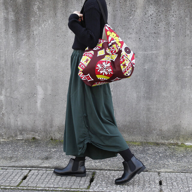 アフリカ布「カンガ」の魅力に実用性を備えたバッグです。裏地に帆布を合わせた丈夫な作りで、荷物を出すと八角形の形になって折りたたむことも可能です。