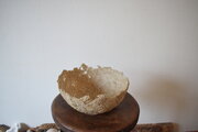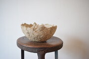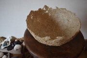 ススキの穂をバラバラにしたものと、和紙で綴られた古い本をバラして溶かして作ったパルプを、ペーパーマシェの手法で作製したボウルです。