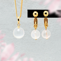 ベビーピンクのローズクォーツをつかった、まんまるフォルムのペンダントネックレス&イヤリング。
