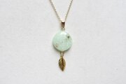 レジンアート ラウンドモチーフと葉っぱチャームのペンダント〈初音〉