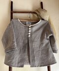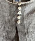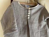 素材:本体/ラミーリネン、ベージュグレー(麻100%)袖口・見返し/手織りヘンプ(野ばら染めの縞柄)