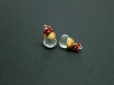 素材:クリスタルクォーツ、貝殻は真鍮、ガーネット、ネジバネイヤリング金具は金メッキです。
