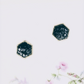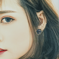 落ち着いた青色が耳元を彩り、装いに静かなアクセントを加えます。