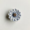 長い時間と手間を要するものですが、その甲斐あって土の手触りと陶の強度、釉薬の艶、金彩のきらめきなどを兼ね備えた、装飾性のあるブローチに仕上がりました。