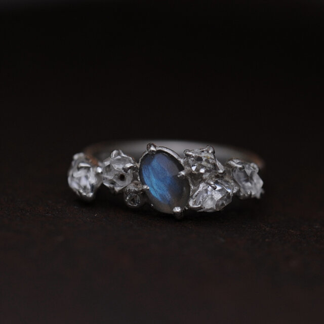 こちらはローズカットのラブラドライトを中石にしてみました。