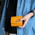 イタリアのオイルドをレザーを使用したコンパクトなお財布。