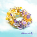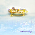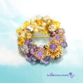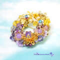 イエロー&バイオレットの煌びやかな雰囲気のリース型ブローチです。
