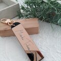 名入れが出来る表面にミラーが掛かった上品なステンレス製キーホルダーです。