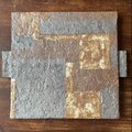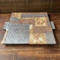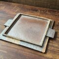 大板皿 手付台皿 鉄釉&灰志野釉 幾何学紋