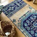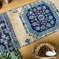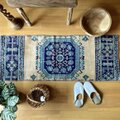 51.5×132くすみイエローベージュ ロングボタニカル トルコヴィンテージラグ