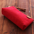 機能的!帆布×レザーのマルチポーチ 内布リネン&便利な内ポケット付き(レッド)