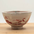 柔らかな風合いで温かみのあるかわいい花唐草の赤絵です。