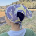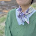 テンキ柄のプチスカーフは優しいパープルが印象的。首元にくるっとひと巻き、ヘアアクセとしてもどうぞ!