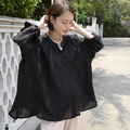 風通しの良い ふんわり柔らかライトコットン✨ 羽織る コットン シャツ ブラック 0674BK