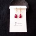 【K14gf】Dark Ruby Big Drop Earrings/ダークルビー 雫フレンチピアス