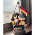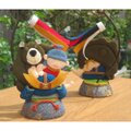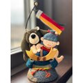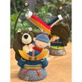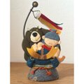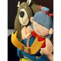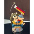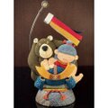仲良しのくまと共に勇ましく兜に乗り掛かっています。