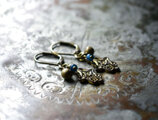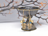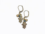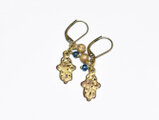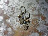 ハムサとインディゴブルーアンティークビーズ、民族鈴を繋いだピアスです。