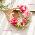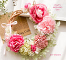 華やかで優しい色合いが、母の日にぴったりなカーネーションのナチュラルリースです。