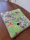sachi さん 素敵な作品をありがとうございます。写真はまだ開けていない状態なのですが、まず、心のこもったパッケージに感動して直ぐに開けないで家族に見せて回りました。当然、同様の反応でした。作品も思った以上にエッジの利いたカラーコーデでした。暫くは、観賞用として熟成させて徐々に活用への方向になろうかと思っています。また、素晴らしい作品をチェックさせて頂きます。 おまけありがとうございます。