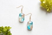 レジンアート エメラルドカットのピアス〈桐の葉蔭〉