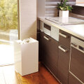 取手付きのゴミ袋を引っ掛けるだけ。回転させると簡単に目隠しできます。予備の袋も収納できる機能的なデザイン。背面に板がないのでお掃除も楽チン。レジ袋の脱着も簡単にできます。犬のいたずら防止にも便利なゴミ箱です。マグネットも付けられるのでキッチン周りでも大活躍。キャスター付きで移動もラクラクです。