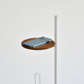 トイレットペーパーホルダーにサイドテーブルの機能をプラス。ちょっとスマホを置いたり、アロマディフューザーを置くなど使い方は自由。グリップバーを掴んで簡単に持ち上げられるので掃除も楽チンです。棚板には新潟県南魚沼産木材を贅沢に使用しました。強度と暖かみがあり、一見するとまるで木の板が浮いているような不思議な感覚を味わえます。