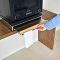 キッチンを美しく整える新提案。使うたびに嬉しくなるスムーズなスライド構造で、料理中のちょい置きテーブルとして大活躍。布巾掛けにもなる取手付きで、機能美を備えた一台です。