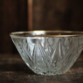 縁に金彩◆見込みに花文様。プレスガラス小鉢 丁寧な暮らしに。ゴージャス 昭和中期