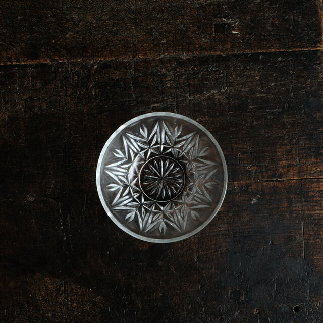 リーフの文様◆クリスタル・プレスガラス小鉢 古民家 古道具 ニュートロ 暮らしに。昭和中〜後期