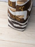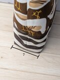 生地の性質上、切り替え部分のしましまの茶色い部分に糸抜けなどで色が抜けている部分があります。