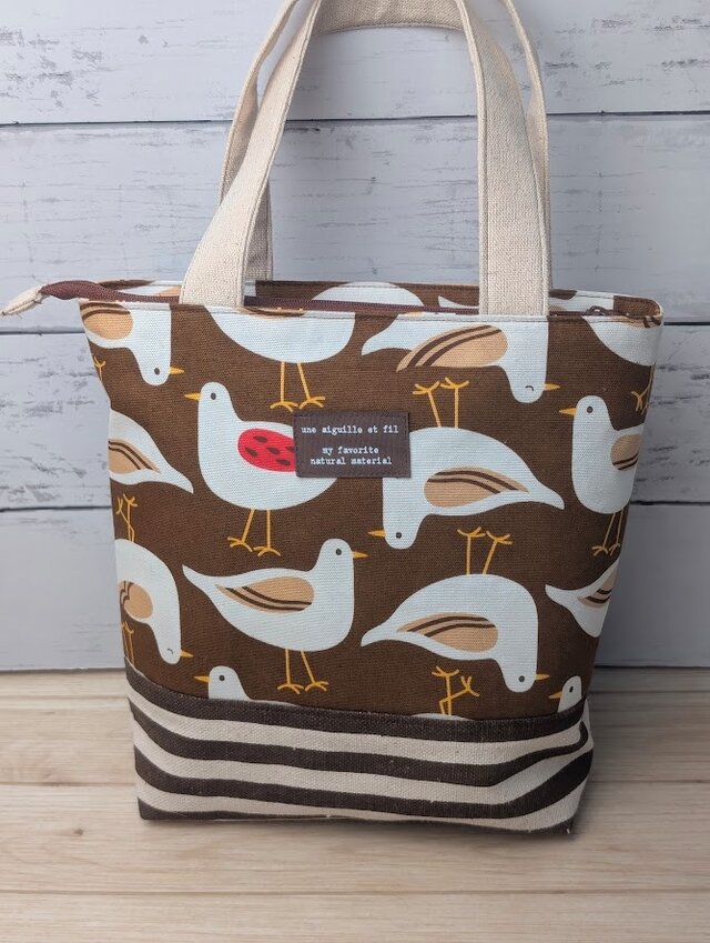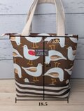 生地は鳩さん部分はキャンバス、持ち手、切り替え部分が綿麻になっています。